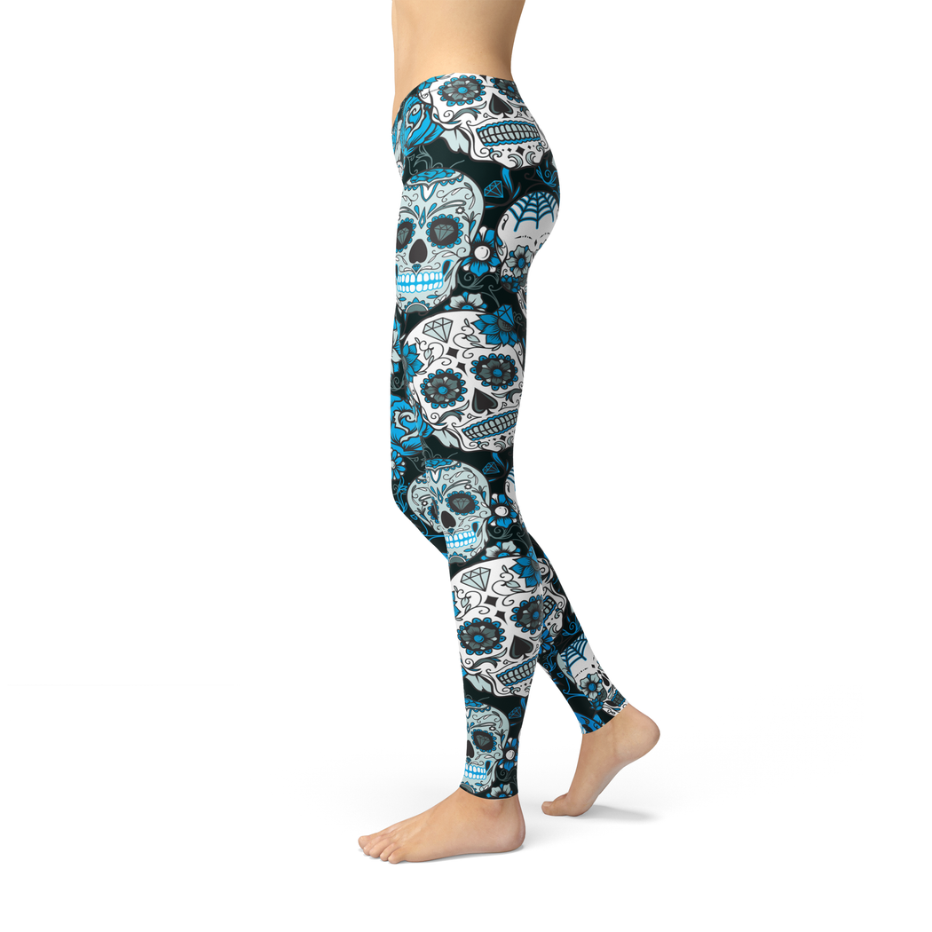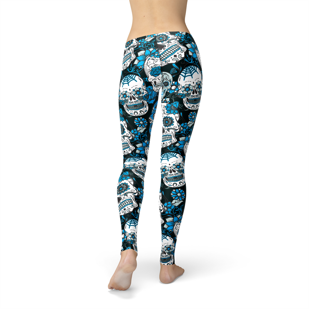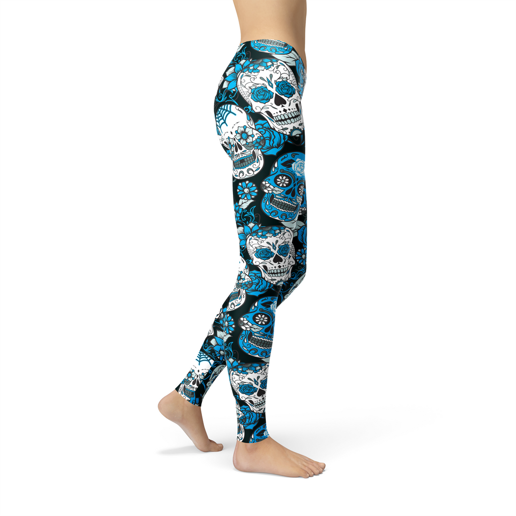 The Avery Blue Sugar Skulls Leggings with 1.5 inch waistband offers a secure and comfortable fit on Soft Lycra fabric. Go ahead Run, Jump, or just relax, these leggings are perfect for any occasion.
