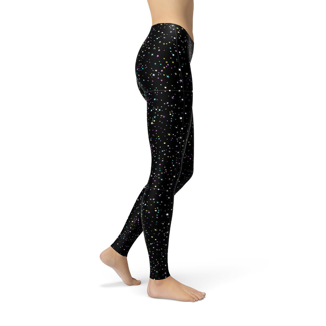 The Avery Star Specks Leggings with 1.5 inch waistband offers a secure and comfortable fit on Soft Lycra fabric. Go ahead Run, Jump, or just relax, these leggings are perfect for any occasion.