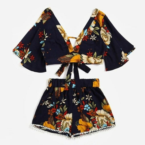 Botanical Print Summer V Collar