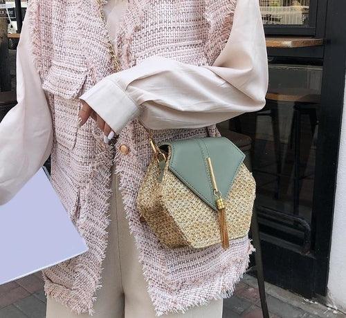 Fashion Hexagon Mulit Style Straw+pu Bag Handbags