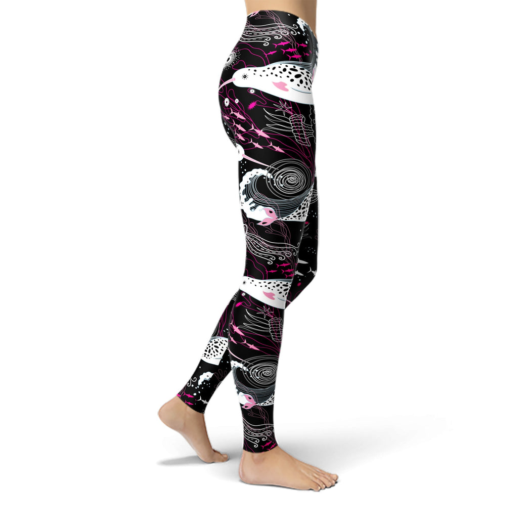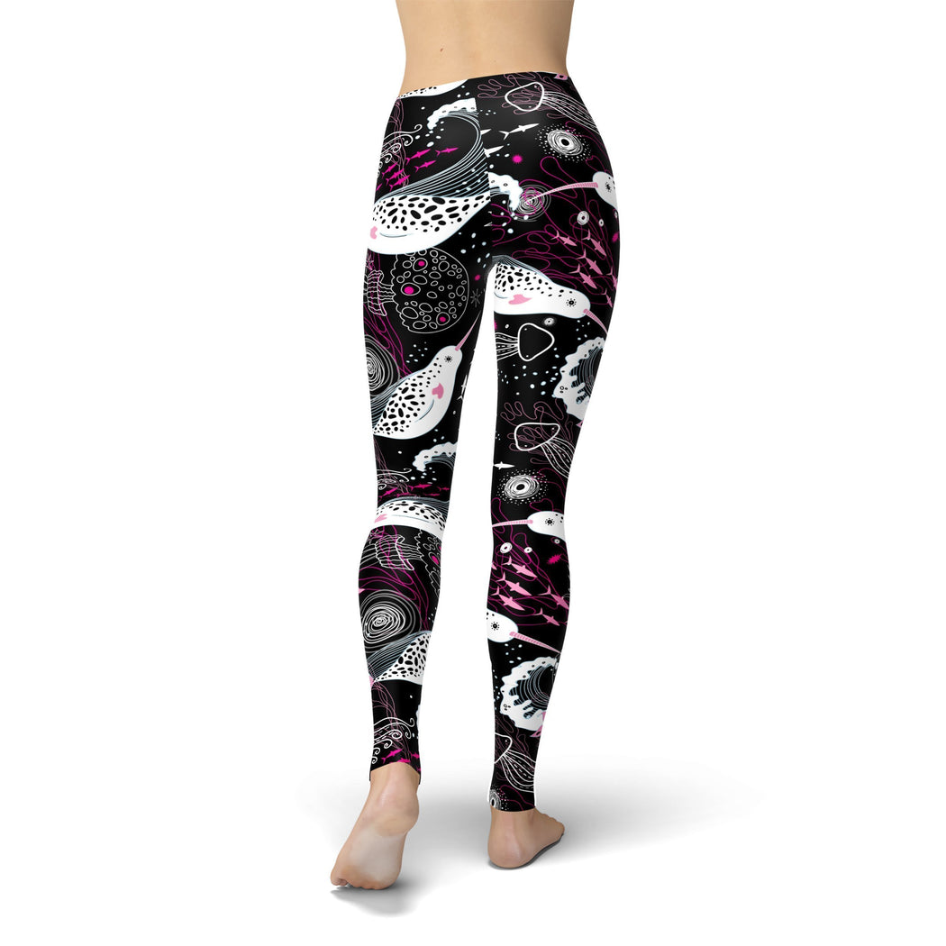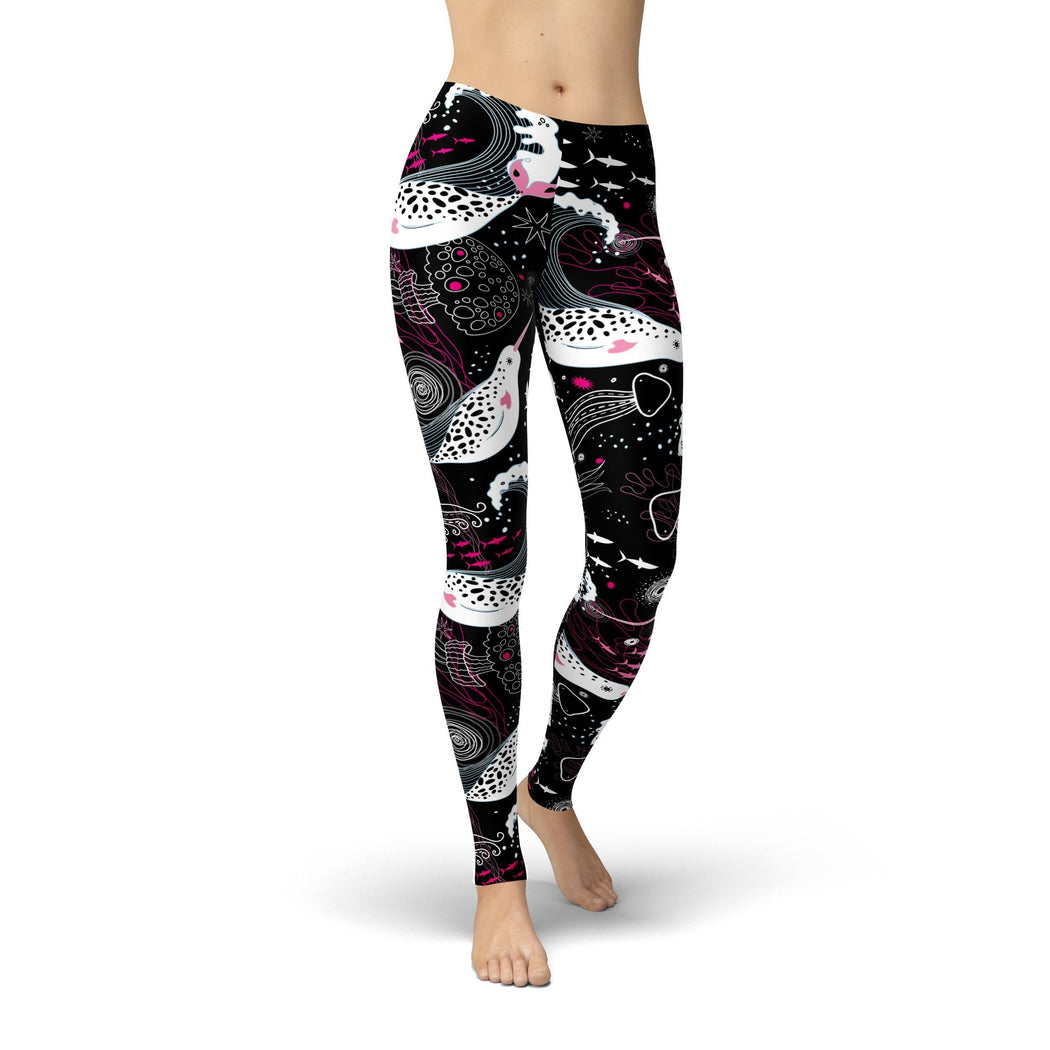 Narwhals are awesome and so is this design! The Handmade Women's Pink and White Narwhals Leggings on soft lycra fabric for lasting comfort.