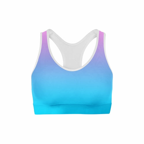 The Pink Blue Ombre Sports Bra helps you stay fit and focused. Lightweight Soft Lycra fabric keeps you cool, while a compression fit and four-way stretch build grant unrestricted movement. Moisture-wicking properties eliminate sweat, and the athletic racer back design with breath-ability.