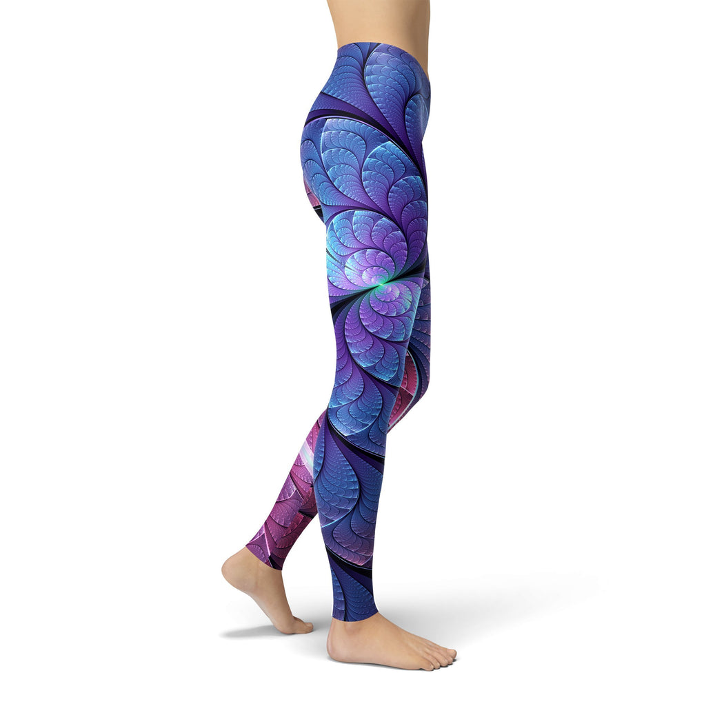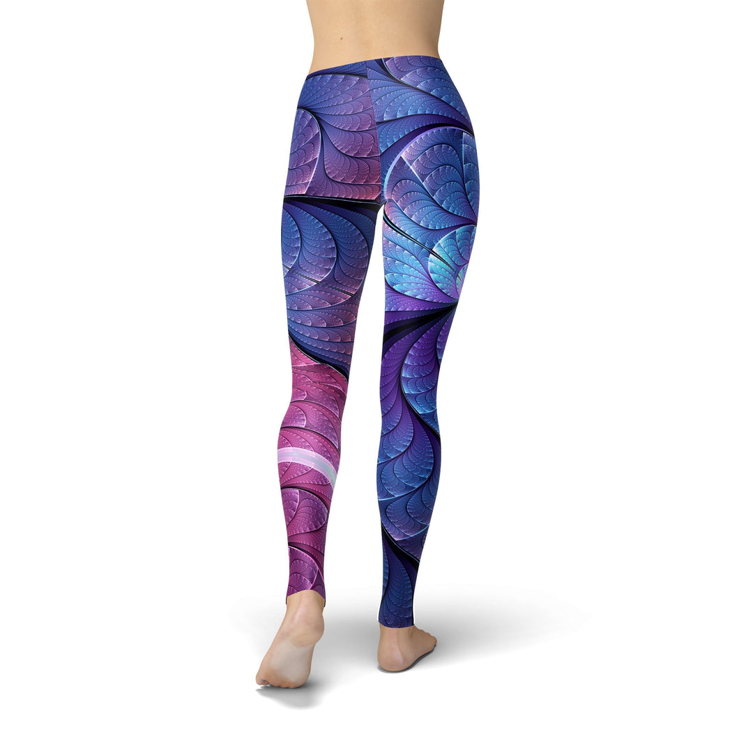 The Handmade Women's Printed Purple and Blue Scales Leggings feature an all-over design, on Buttery Soft fabric for lasting comfort.