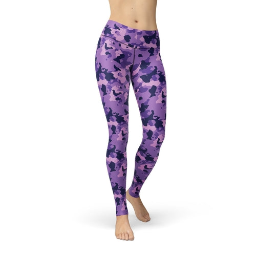 The Handmade Women's Purple Camouflage Leggings feature an all-over design inspired by modern architecture in Paris on soft lycra fabric for lasting comfort.