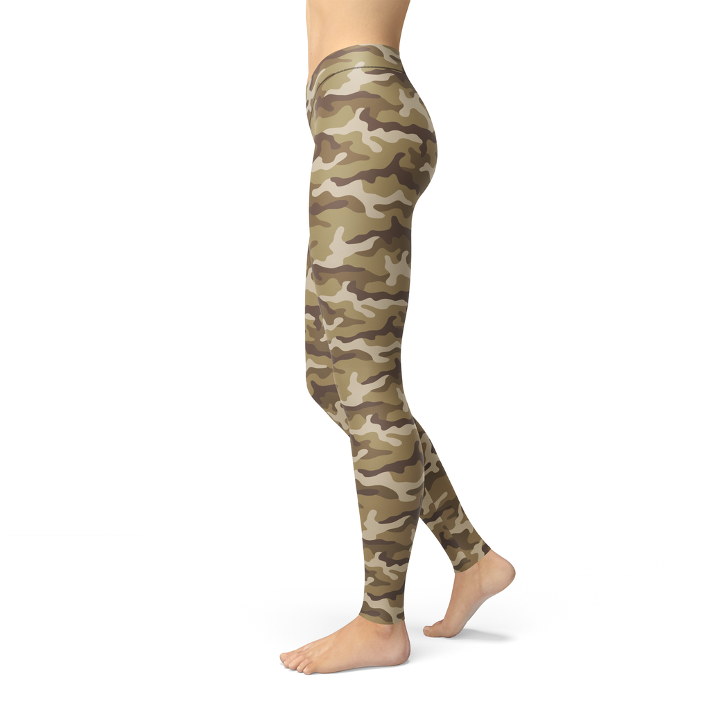 The handmade Tan Camo Leggings will help you stand out or blend in, featuring an all-over design on soft lycra fabric for lasting comfort.