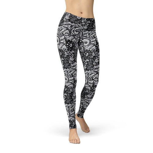 The Handmade Jean Black Lace Leggings feature an all-over design on soft lycra fabric for lasting comfort.