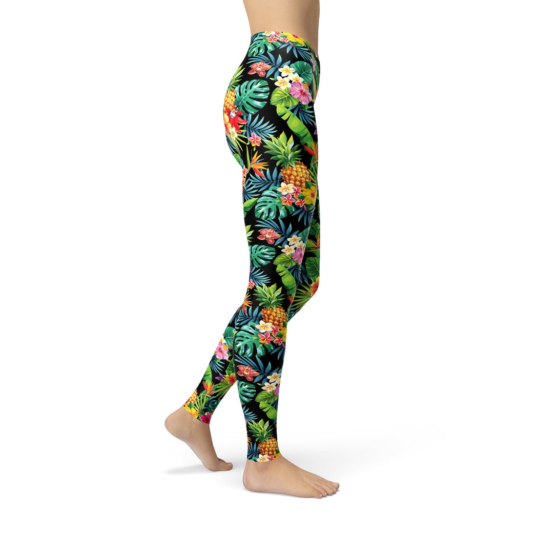 The Handmade Women's Printed Tropical Pineapple Flowers Leggings feature an all-over on soft lycra fabric for lasting comfort.
