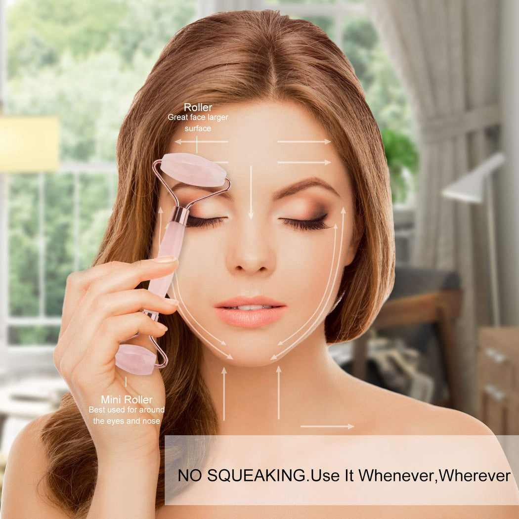 Massage face with the big roller head from bottom to top along the growth direction of skin, which can improve the skin and avoid muscle sagging.